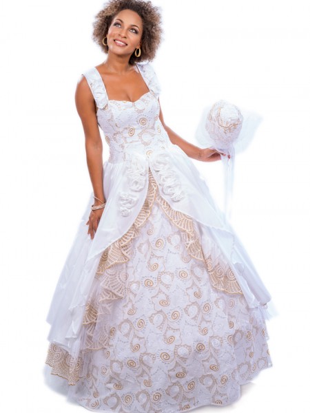 Pour la cérémonie de mariage, le modèle robe de mariée Jour de Rêve marque le choix de la sobriété mêlée au raffinement. Il est l'interprétation subtile d'un style antillais qui assure la prestance et séduit les imaginaires romantiques. Bustier en forme de cœur qui épouse parfaitement les lignes de la poitrine. Vendu avec son jupon sans le bouquet