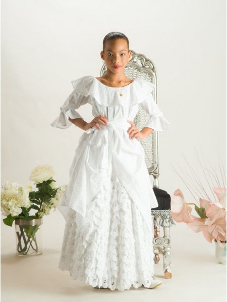 Sublime robe de 1ère Communion longue tout en coton, facile à porter accompagner de son joli boléro.