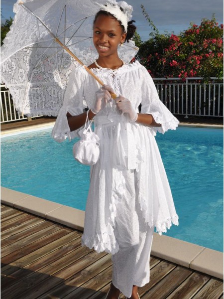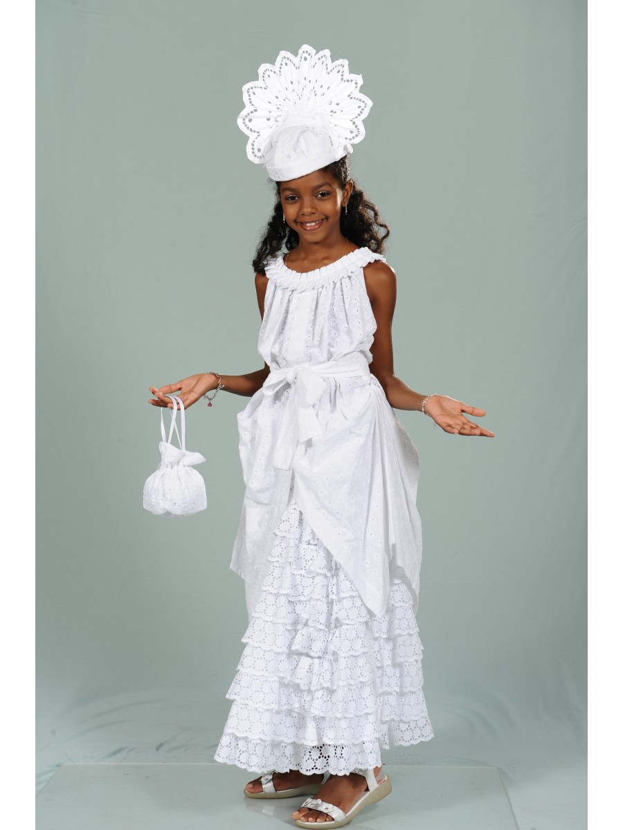 Pour finaliser la tenue, Sophéa entièrement en broderie pour la robe créole de première communion de la collection Dody pour les filles est idéale pour votre jeune fille associant l'élégance à l'originalité et le style traditionnel antillais à la simplicité ! Longueur aux chevilles, cette robe offre à votre fille classe et confort. Compléter votre journée spéciale avec la robe de Dody pour faire bonheur a votre petit ange.