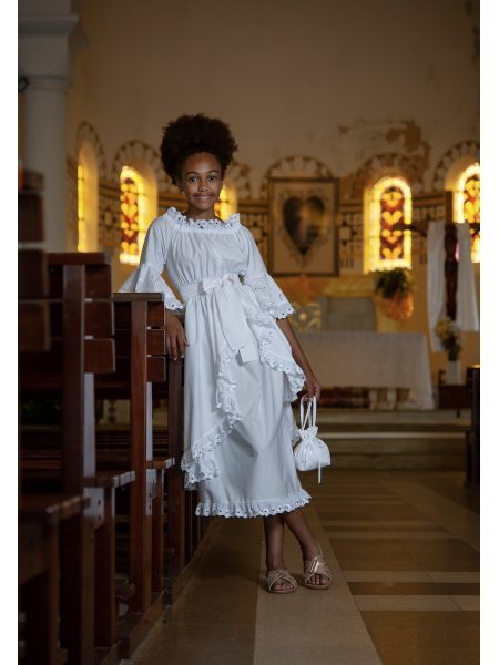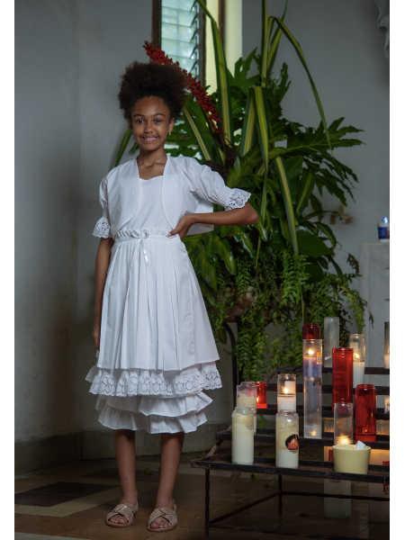 Vous cherchez une tenue unique convenable à votre petite pour ce moment spécial de cérémonie de communion ? Les Robes Premiere Communion très élégantes et simples de DODY conviennent parfaitement à cette fête catholique ! Découvrez nos magnifiques robes de communion blanches ou ecrues, unies ou en broderie, modèles simples adaptés à la mode antillaise.