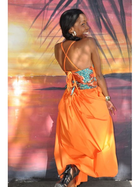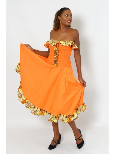 Sobriété et raffinement pour la robe Beyonce ! Cette robe en Wax à manches vous séduira par son look élégant et sophistiqué.