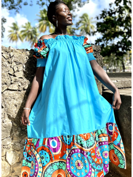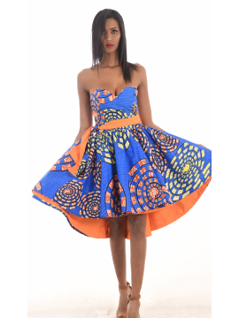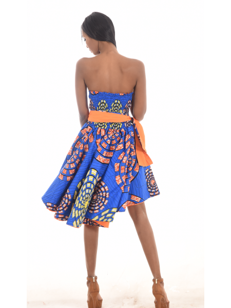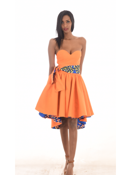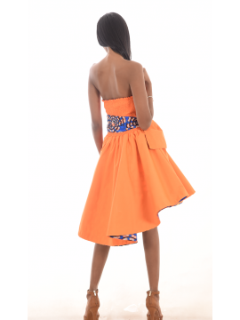 A la fois original et confortable pour cette jolie robe recto-verso d'un côté coton orange et de l'autre en Wax.