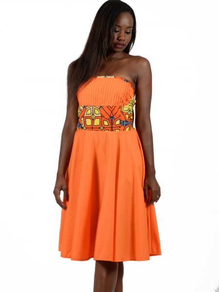 Elégante robe créole en véritable Wax avec son volant au niveau du décolleté ; avec une ceinture à nouer pour mettre en relief le charme particulier de la taille.